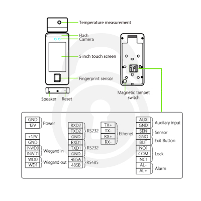 FacePro1-TI visible light facial recognition with thermal imaging body temperature detection terminal, It supports both facial and palm verification with large capacity and speedy recognition, as well improves security performance in all aspects.