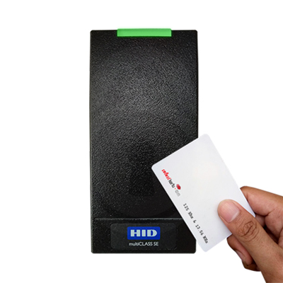 The multiCLASS SE® RP10 is part of HID Global’s iCLASS SE platform for adaptable, interoperable access control. Designed for door applications requiring a small footprint card reader, multiCLASS SE® RP10 supports a broad array of high frequency 13.56 MHz and low frequency 125kHz credential technologies and a variety of form factors including; cards, fobs and mobile devices. Configurable to support HID Mobile Access®.