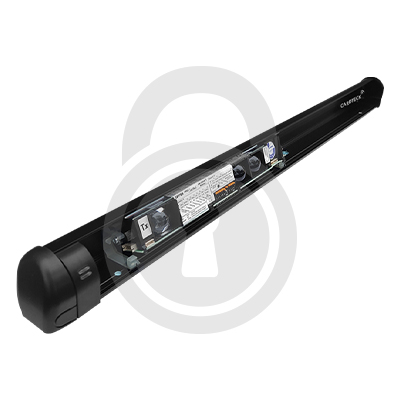 - Slim Design, The sensor has a very slim design to ensure it will fit on many different types of swing door. The sensor is available in a black profile complete with a black lens.