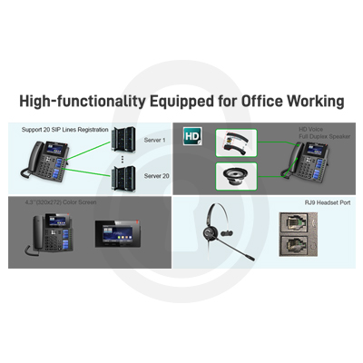4.3″ Main Color Screen + 2 x 2.4”DSS Screen, Smart and Friendly User Interface. The new X6 combines the advantages of existing enterprise phone UI design experience with color screen. The UI appearance and operating experience have a qualitative leap.